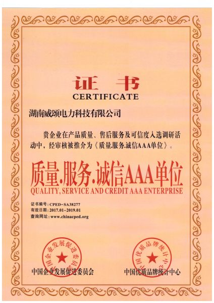 质量服务诚信AAA单位
